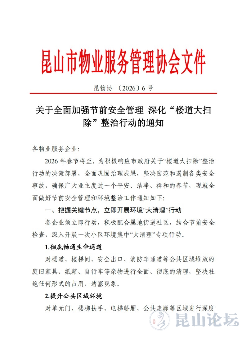关于全面加强节前安全管理 深化“楼道大扫除”整治行动的通知